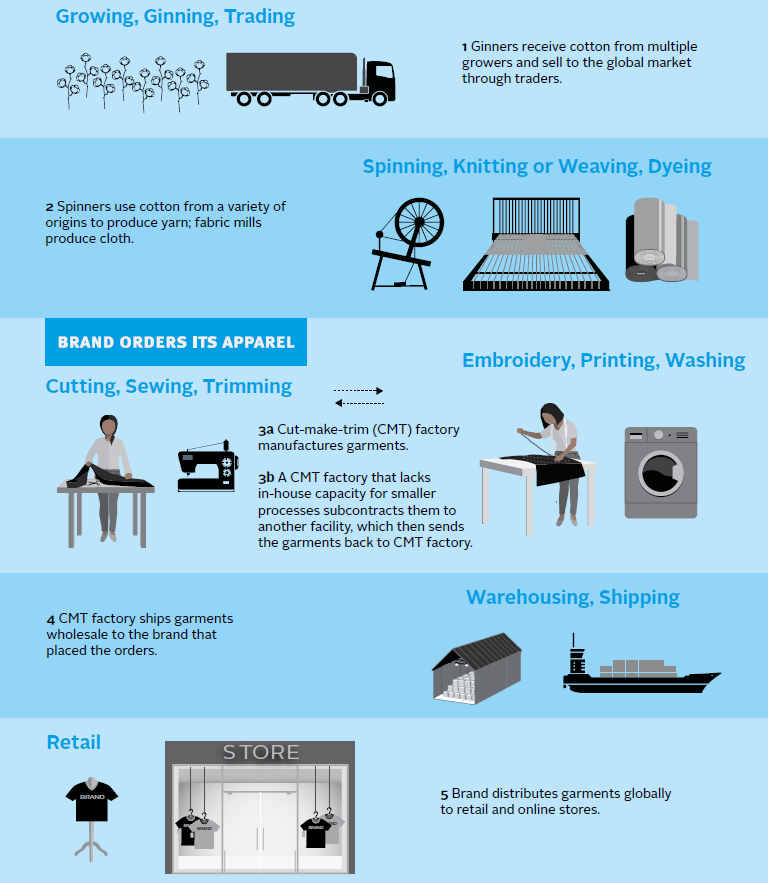 The shirt is stitched step by step: